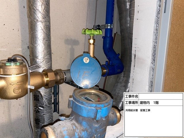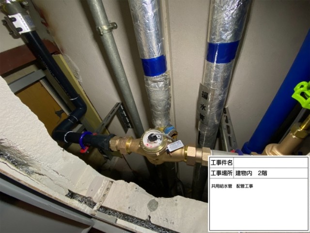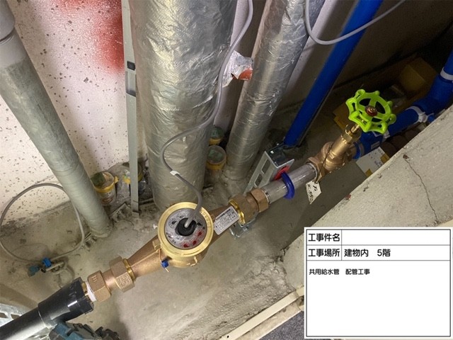 新規給水管経路・給水管経路を確保すた為の付帯工事などの確認をして、オーナー様と協議し、その際にオーナー様から私設メーターが各階のテナント内にあり、毎月の検診でご苦労されているとのお話をいただき、パルスメーターで、1ヶ所でまとめた検診を提案させていただきました。